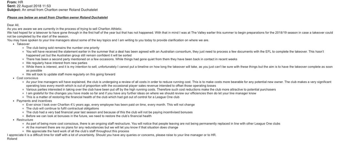 My favourite bit of that email is this: “Should you have any queries or concerns, please raise to your line manager or HR.” I will repeat what I have said on here hundreds of times before. How an earth this man has made a penny in business is absolutely beyond me.